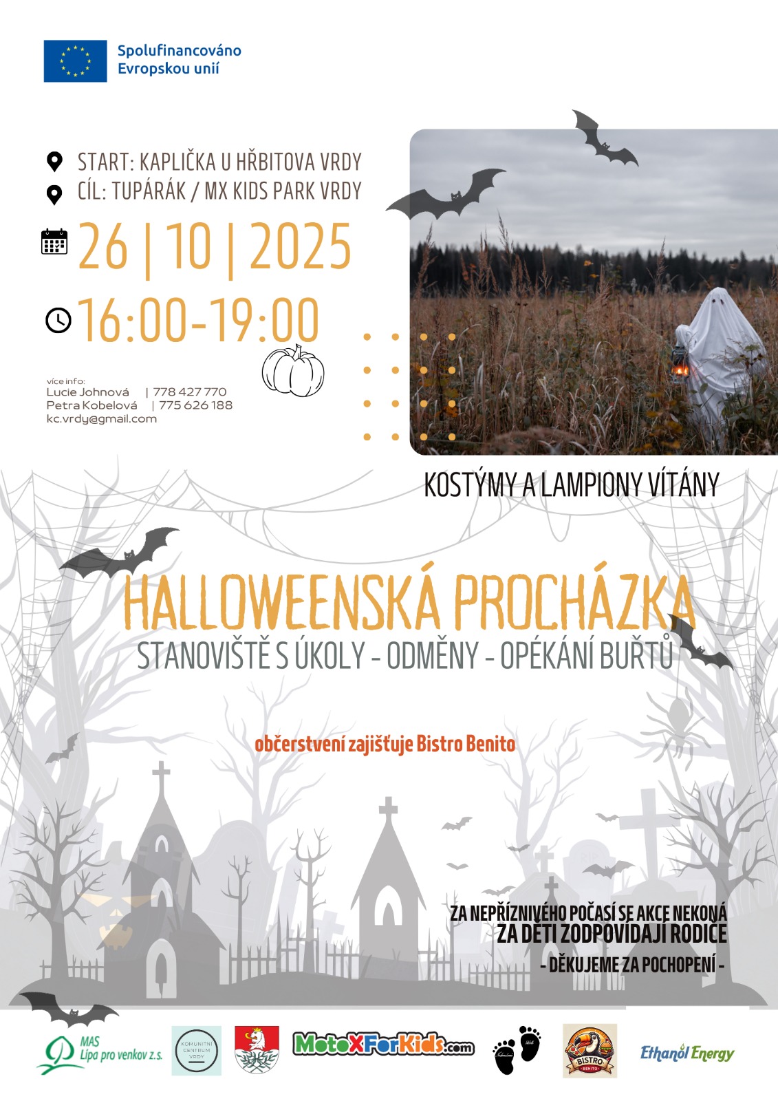 Dne 26.října, pomáháme s dětskou akcí v obci Vrdy. Jedná se o podvečerní procházku s lampiony a kostýmy lemovanou stanovišti, na kterých děti čekají úkoly a drobné odměny.